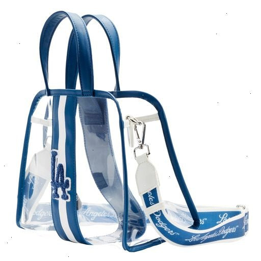 Show your team spirit with an accessory that will knock your Loungefly collection out of the park! The MLB LA Dodgers Stadium Crossbody Bag with Pouch is a home run for any Dodgers fan. Made of clear PVC material, this bag is perfect for bringing your gameday essentials into the ballpark. The team’s logo appears on the bag’s center and along the blue, adjustable strap. Featuring sporty embroidered patch details, the inner detachable zipper pouch has plenty of room to hold your important items. This multi-functional bag provides a stylish way to transport your gear as you cheer on your team from the sidelines.