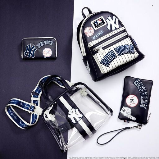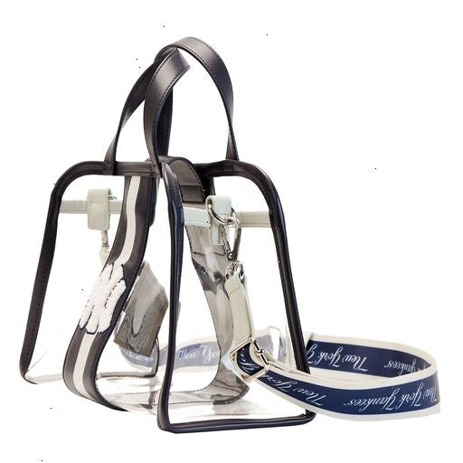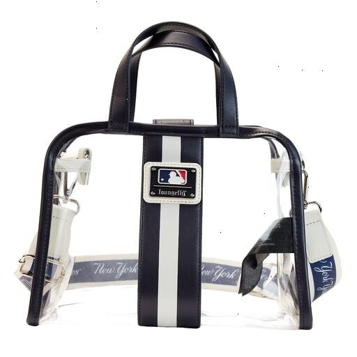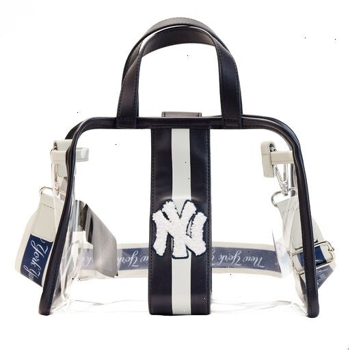 Show your team spirit with an accessory that will knock your Loungefly collection out of the park! The MLB NY Yankees Stadium Crossbody Bag with Pouch is a home run for any Yankees fan. Made of clear PVC material, this bag is perfect for bringing your gameday essentials into the ballpark. The team’s logo appears on the bag’s center and along the navy blue, adjustable strap. Featuring sporty embroidered patch details, the inner detachable zipper pouch has plenty of room to hold your important items. This multi-functional bag provides a stylish way to transport your gear as you cheer on your team from the sidelines.