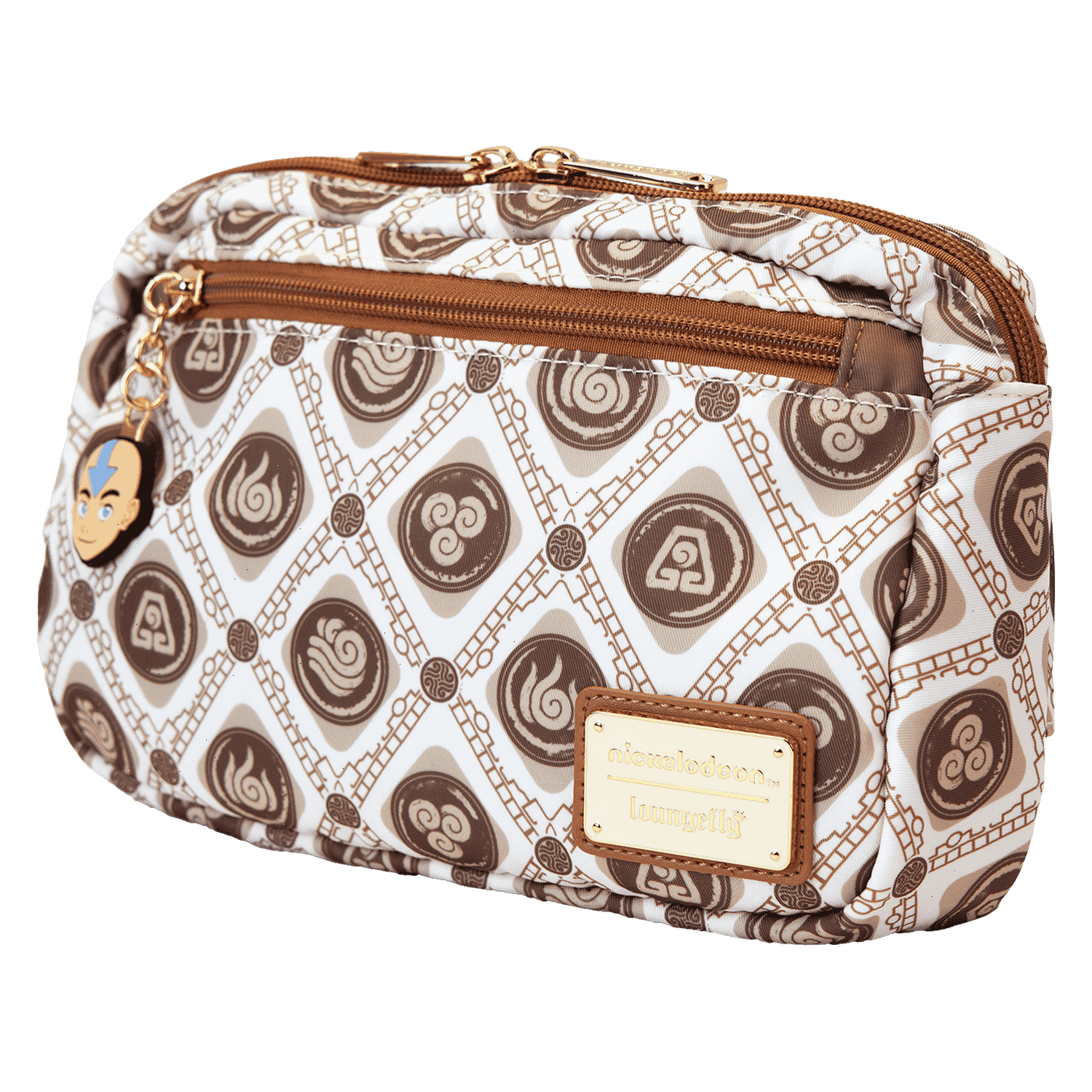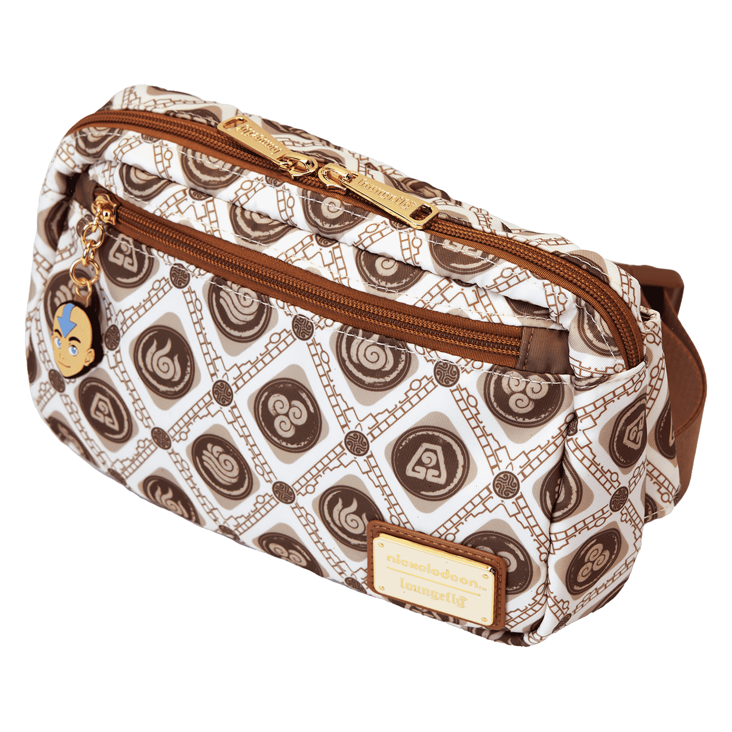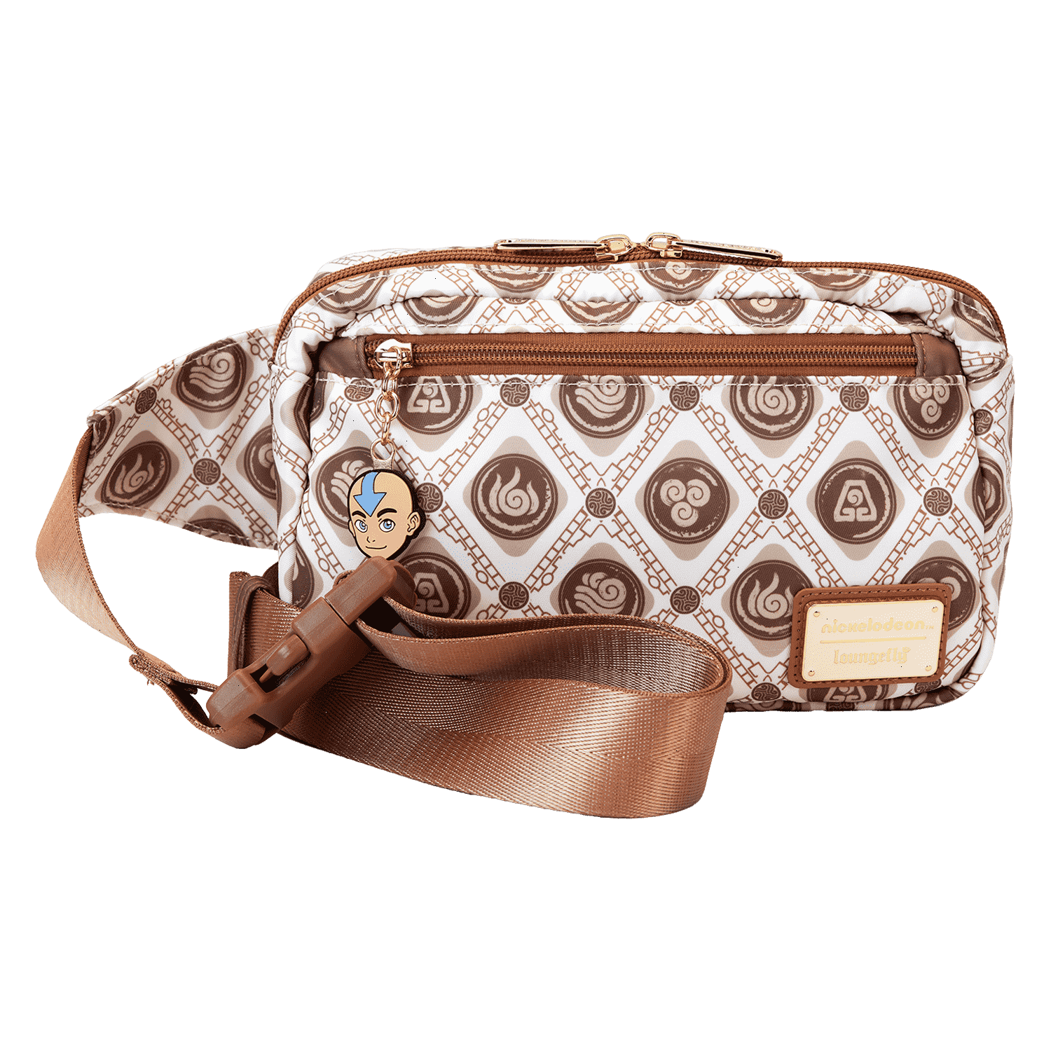 Brave the elements in style! Take along this Avatar: The Last Airbender sling bag. This convenient bag, in neutral tones, features a motif of all the symbols, and a silicone zipper charm of Aang tops off the look. Keep your daily essentials close by and soar through adventures with this fashionable accessory.