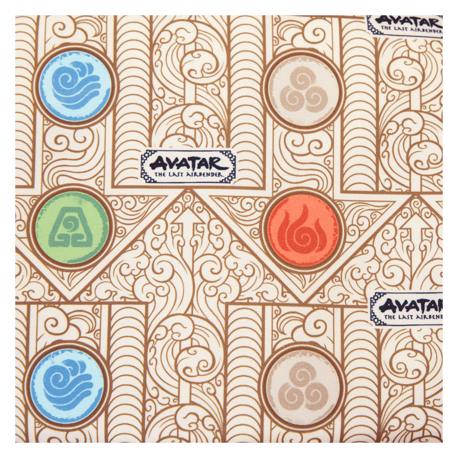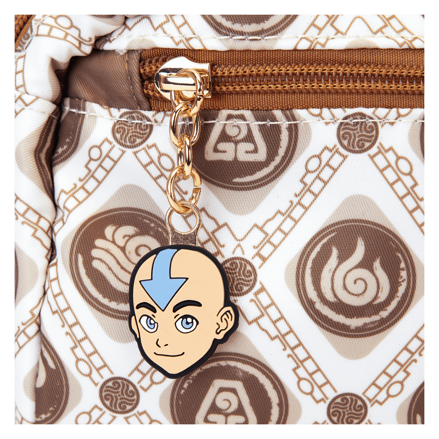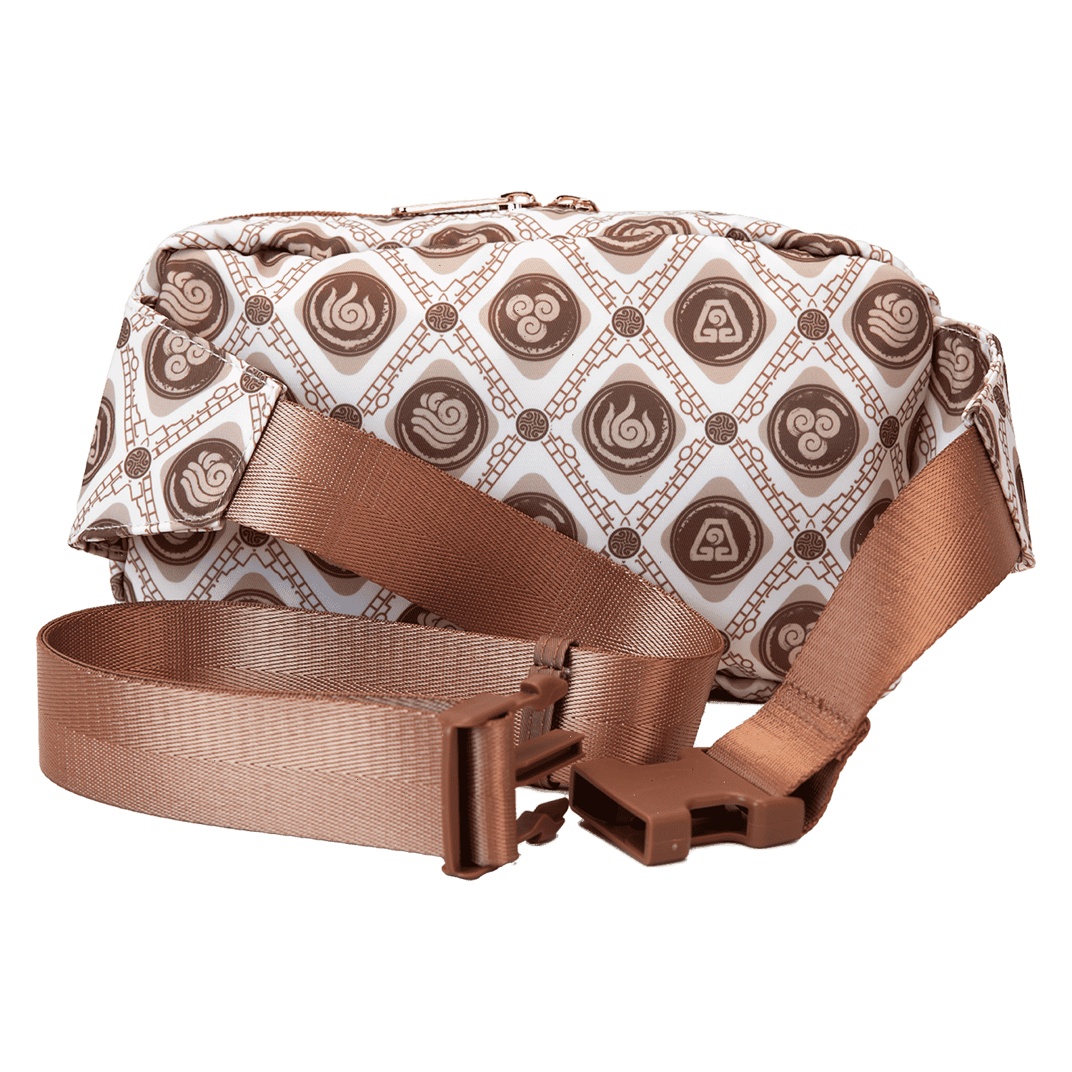 Brave the elements in style! Take along this Avatar: The Last Airbender sling bag. This convenient bag, in neutral tones, features a motif of all the symbols, and a silicone zipper charm of Aang tops off the look. Keep your daily essentials close by and soar through adventures with this fashionable accessory.