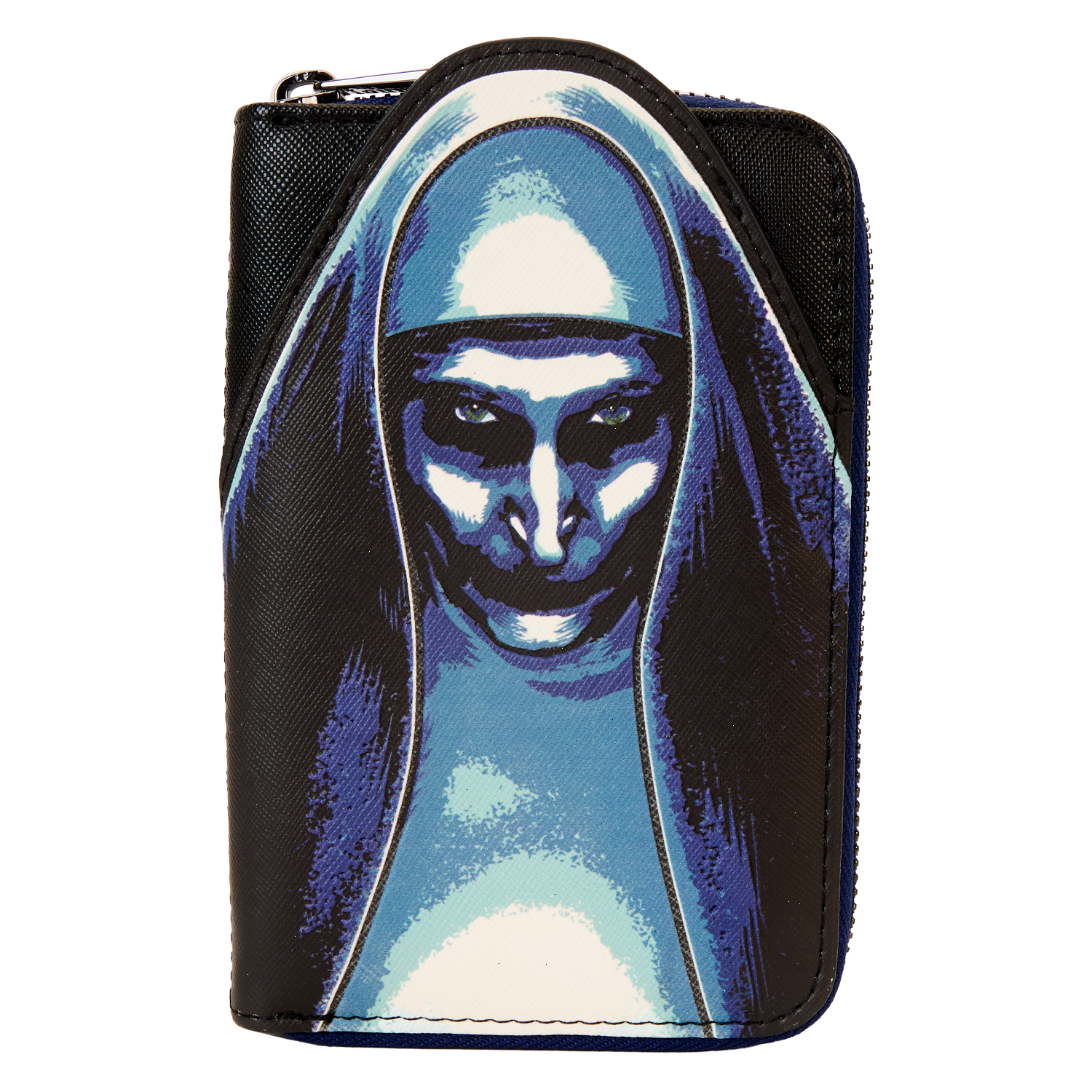 Venture through candlelit passageways and fog-covered haunts in style. This wallet, featuring The Nun, is truly a vision. Eerie printed details of an apparition of The Nun materialize on the front. In the dark, parts of her face and habit glow! On the back, you’ll find original, detailed artwork of the monastery in moonlight, shrouded by trees. Secure your valuables for a fashionably spirited adventure.