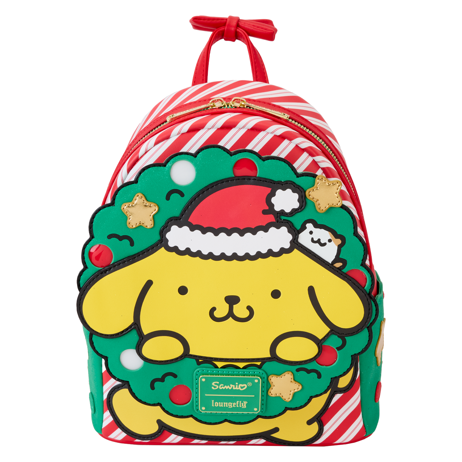 The sweetest and merriest adventures are all a-glow with a ho-ho-ho! Set off in style with our exclusive Pompompurin mini backpack, which features a fun holiday wreath. Pompompurin, in applique form, is happily caught in the wreath’s embrace. And, the lights on the wreath light up! Metallic gold star applique details add a festive touch, along with candy-cane-striped patterns. The wreath also doubles as a figural front pocket for securing smaller items on your journeys. Pack your daily essentials and share smiles wherever you go this holiday season.
