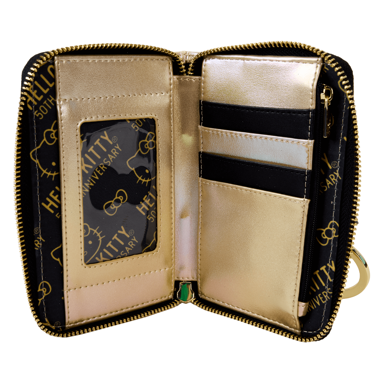 sanrio hello kitty 50th anniversary gold zip around wallet