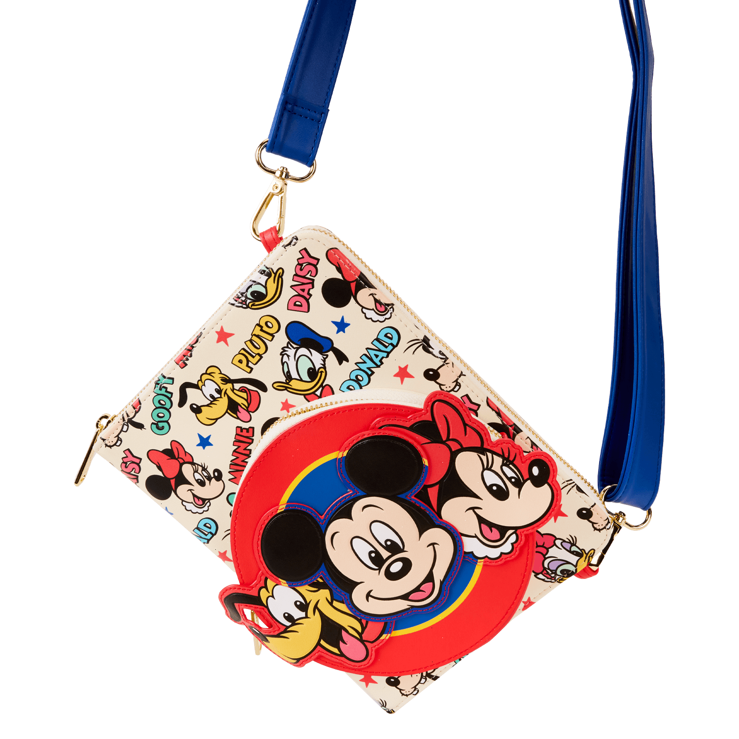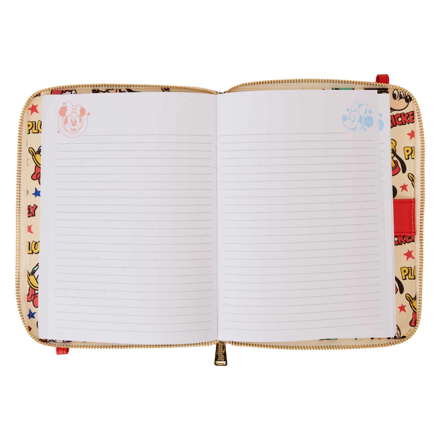 mickey & friends classic all-over print refillable stationery zip around crossbody journal