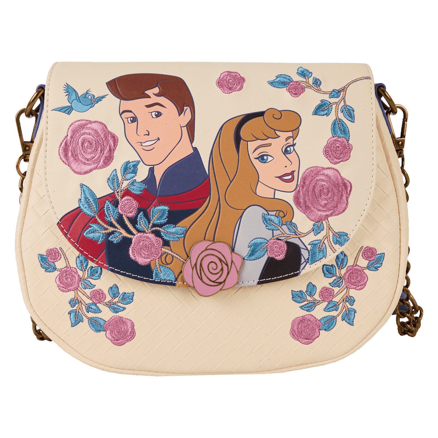 sleeping beauty princess aurora & prince phillip floral crossbody bag