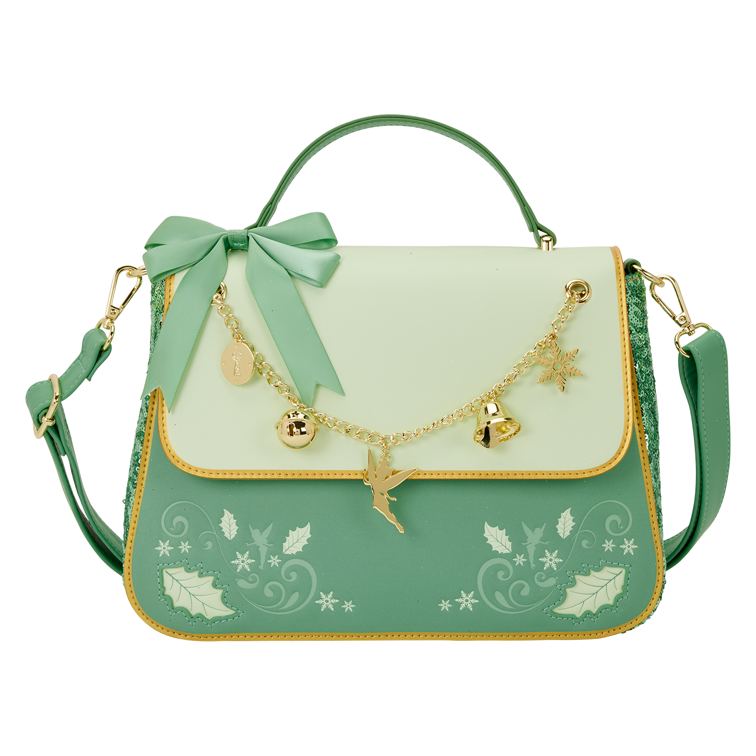 peter pan tinker bell holiday sequin crossbody bag with charms