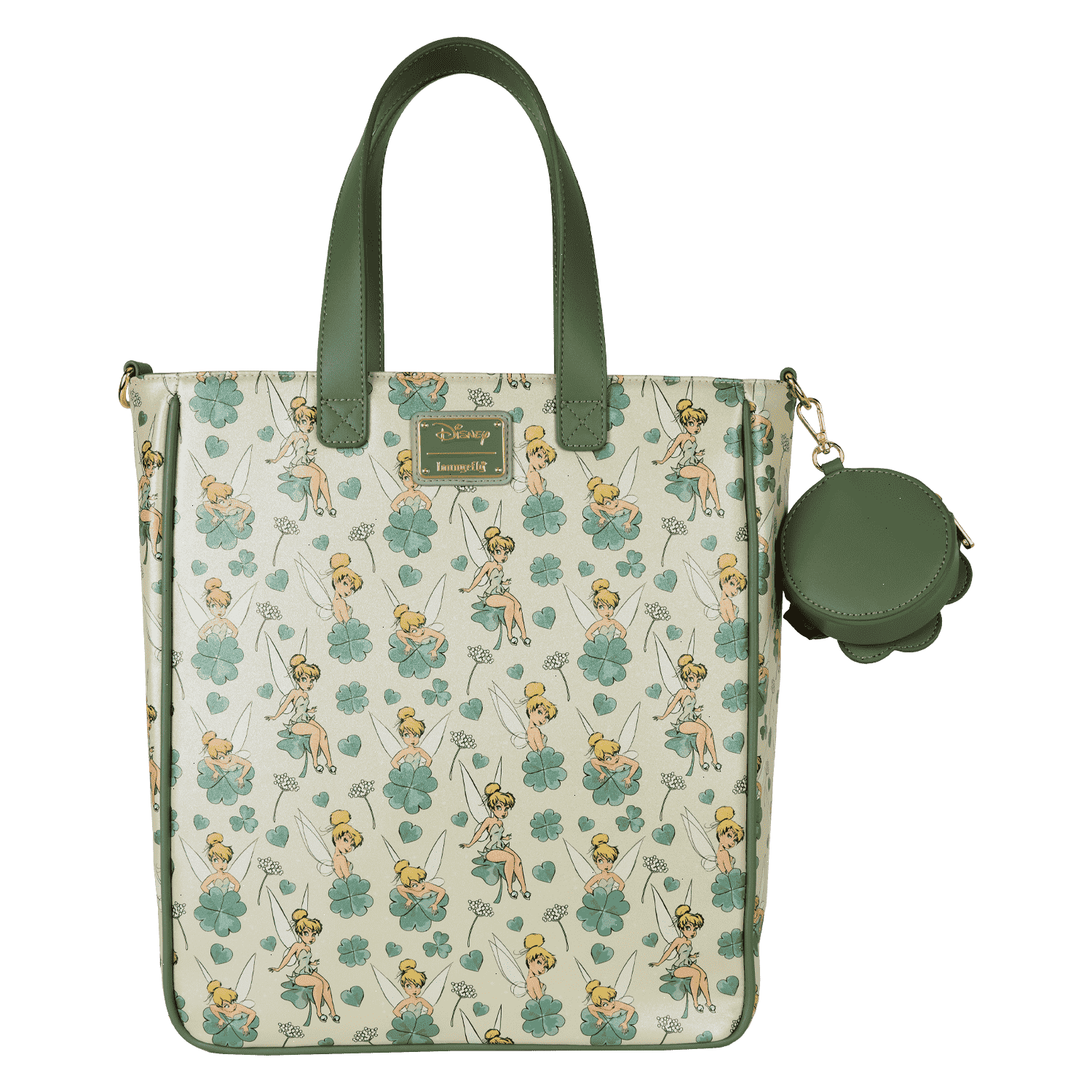 peter pan tinker bell clover all-over print tote crossbody bag with coin bag